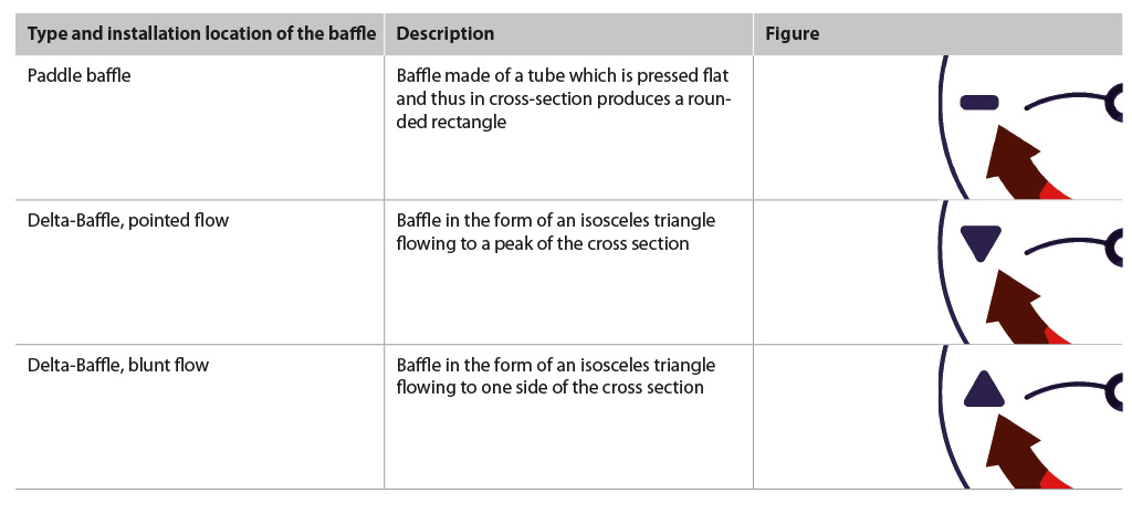 The ideal feeding point by using the optimum baffle configuration (Delta-Baffle) is obviously that in front and with some reservations, that behind the baffle, according to the investigations carried out.