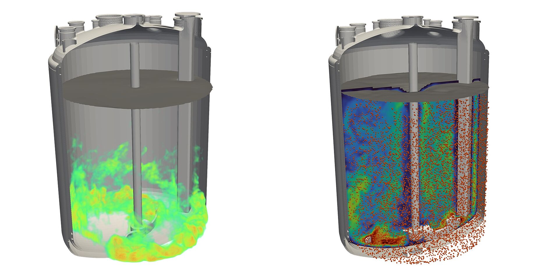 Generell weist die SoliSus ein relativ großes Durchmesserverhältnis (Rührer- zu Behälterdurchmesser) auf und besitzt verbreiterte Flügelenden. Die Flügelspitzen selbst enden unterhalb des Stromstörers. Da an den Flügelspitzen die höchsten Strömungsgeschwindigkeiten erzeugt werden, bewirken die zuvor genannten drei Aspekte in einem großen Bereich hohe Impulskräfte auf die Partikel – auch schon bei niedrigen Drehzahlen. Partikelansammlungen an der Bodenkrempe werden minimiert (Abbildung 2). Ferner bewirkt ein großer Rührerdurchmesser eine hohe Pumpwirkung im Reaktor. Ein effizientes Rühren bei geringer Drehzahl spart Energiekosten. Eine hohe Pumpwirkung reduziert weiterhin Mischzeiten (Homogenisieren) und bewirkt einen guten Wärmeübergang.