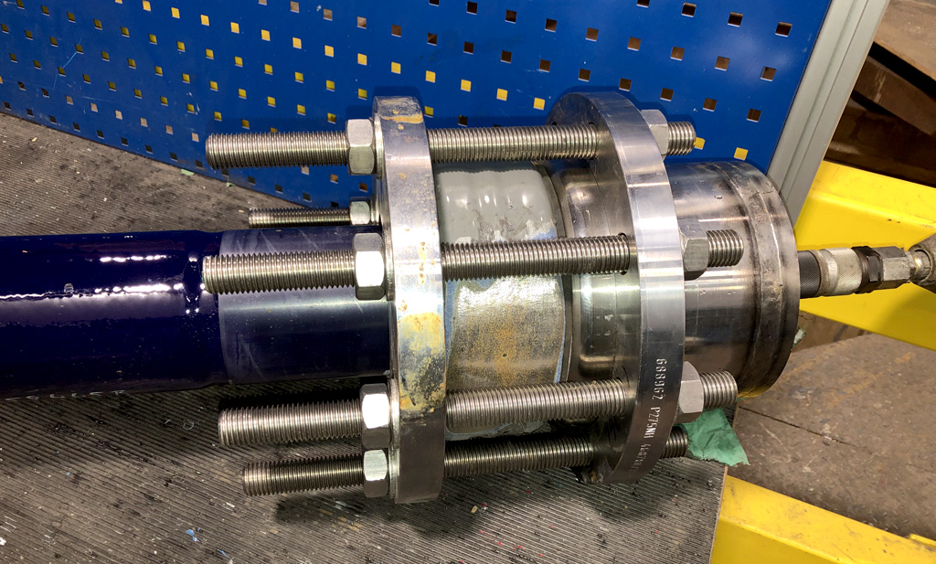 Dazu wurde ein Versuchsaufbau hergestellt: Eine Rührernabe wurde auf Rührwelle aufgeschrumpft. Dann wurde die Verbindung einseitig verschlossen und mit Druck beaufschlagt.