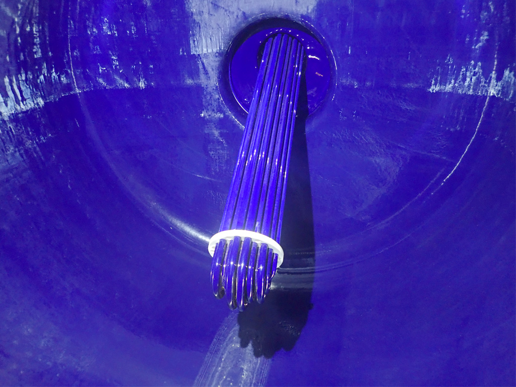 Selbstverständlich können PowerBaffles auch in vertikalen Lagertanks eingebaut werden. Die bei THALETEC vorhandenen Fertigungsanlagen ermöglichen die Herstellung von emaillierten Rohren bis zu einer Länge von 6.000 mm, so dass auch größte emaillierte Lagerbehälter über die gesamte Füllhöhe hinweg sicher temperiert werden können.