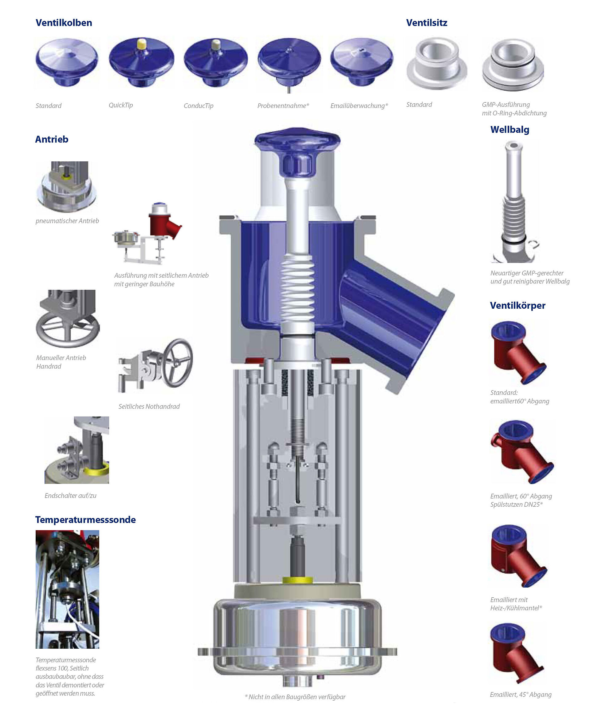 Im Gegensatz zu konventionellen Faltenbälgen ist der THALETEC Wellbalg optimal zu reinigen. Der Wellbalg ist zudem GMPwollen gerecht mit Hilfe eines O-Ringes gegen den Ventilkörper abgedichtet, dessen Emaillierung im Dichtbereich präzisionsgeschliffen ist.