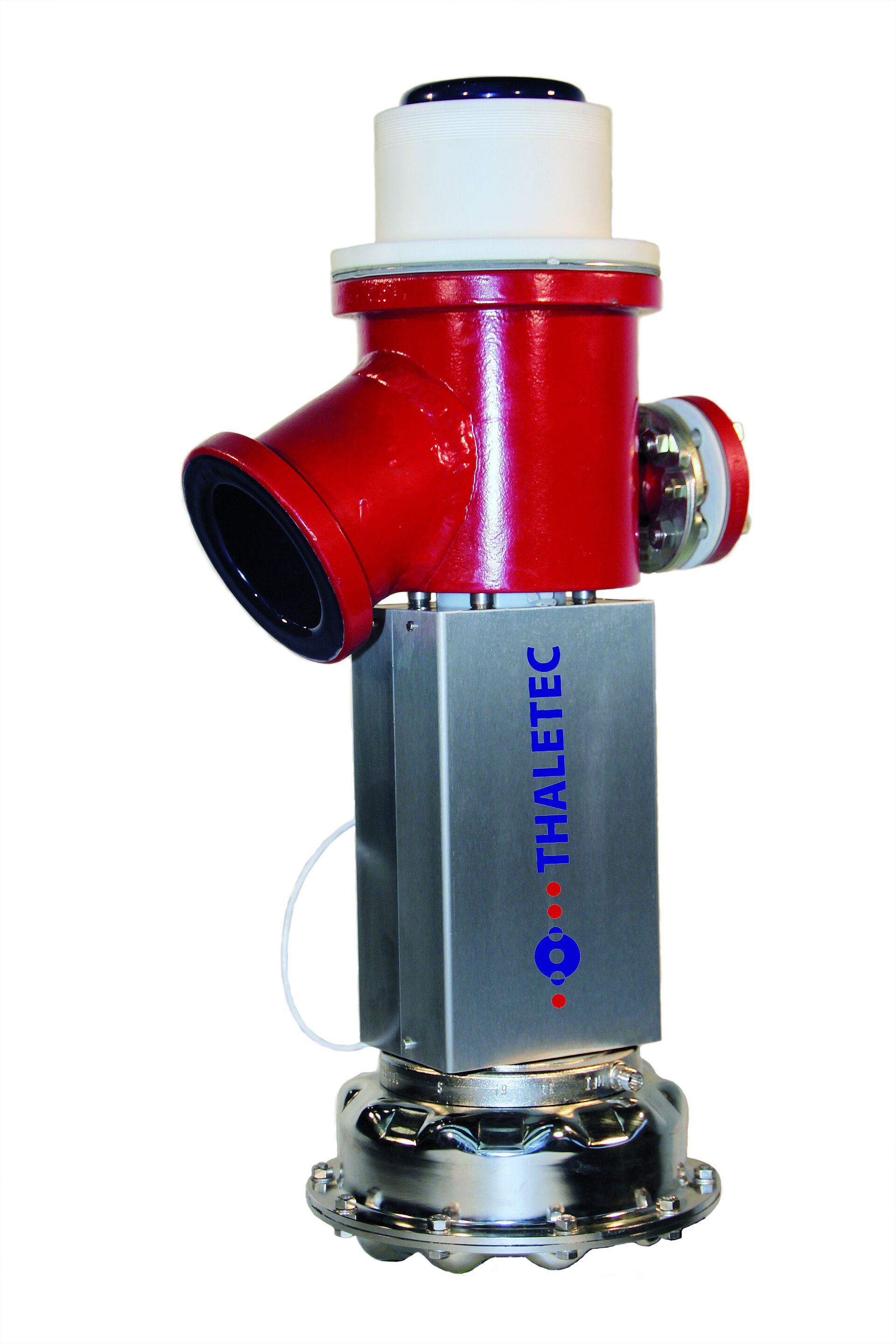 Der pneumatische Antrieb von THALETEC besitzt ein robustes Edelstahlgehäuse. Zur Erhöhung der Betriebssicherheit wurde die Variante „Federkraft schließend“ gewählt. Sollte es aus Sicherheitsgründen wichtig sein, dass der Behälter bei Energieausfall leerläuft, steht auch die Variante „Federkraft öffnend“ auf Anfrage zur Verfügung.