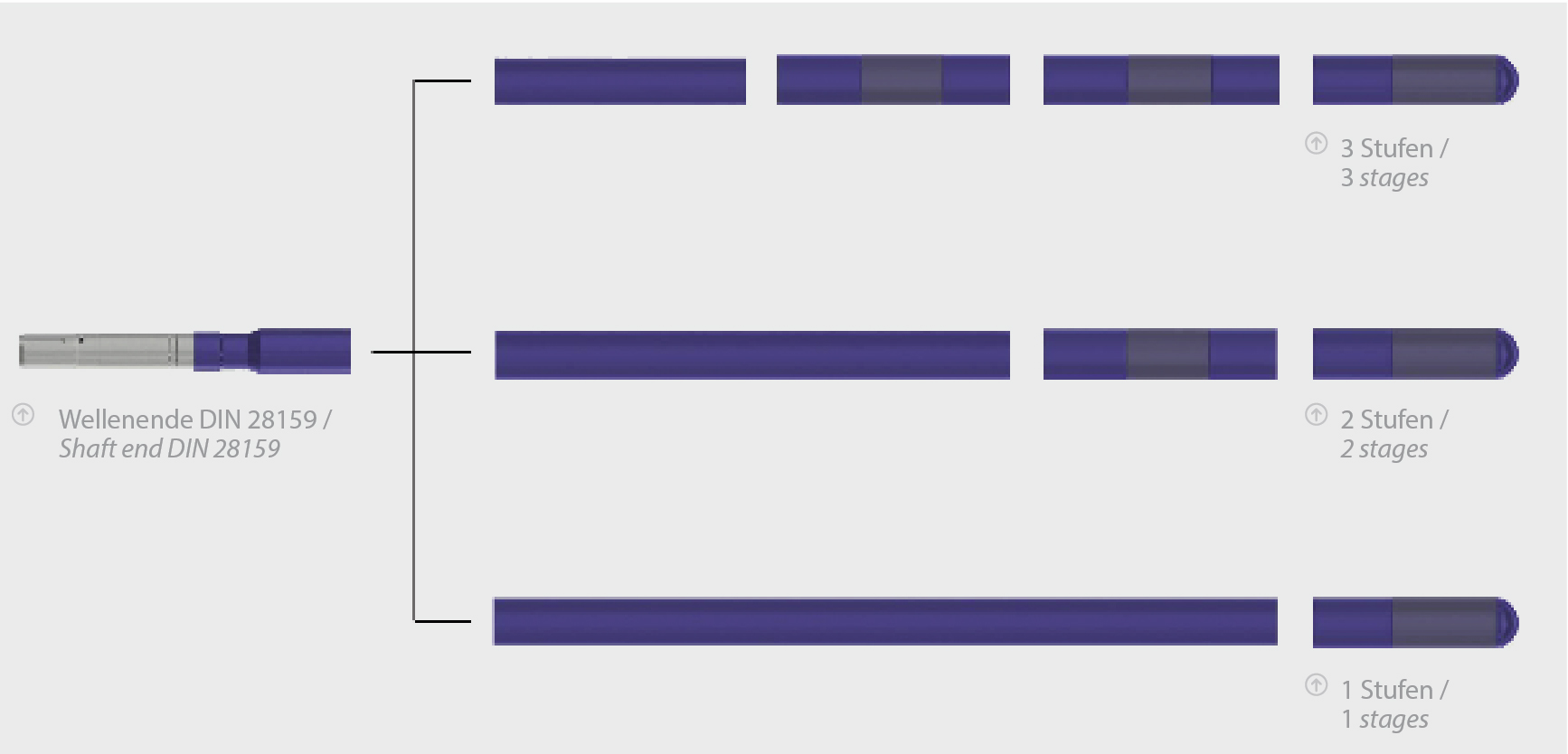 - Rührer-Wellenenden nach DIN 28159 oder nach den Standards anderer Hersteller