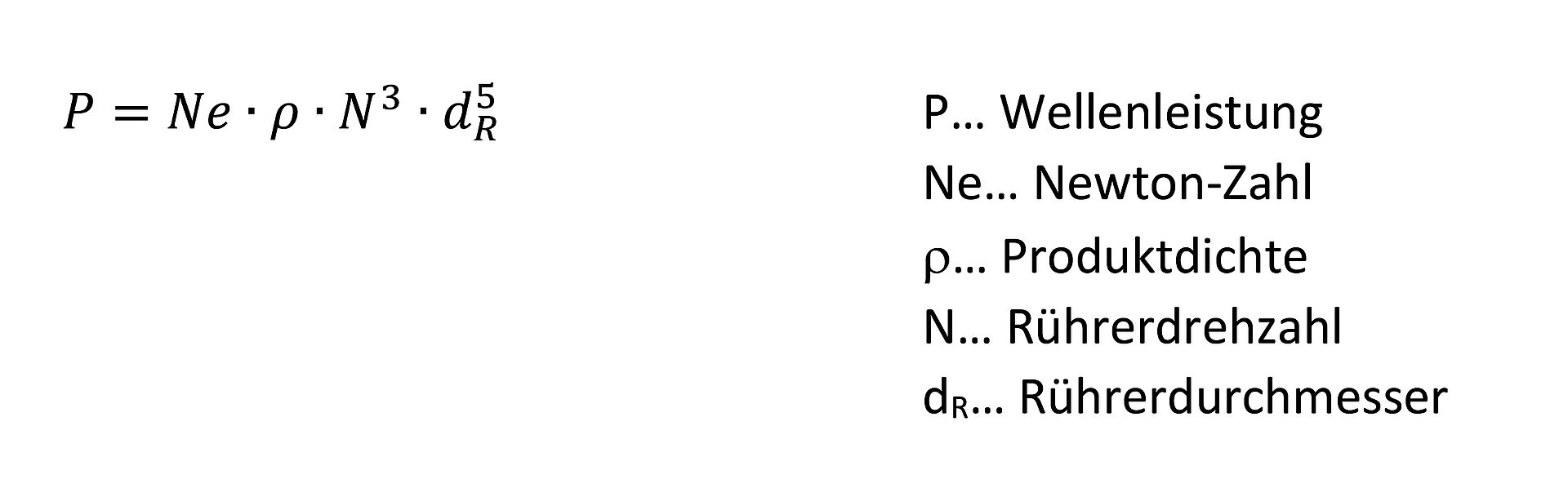 Der Leistungseintrag ist abhängig von den Stoffeigenschaften des im Apparat verarbeiteten Produktes und der Rührtechnik. Wird ein Betrieb im turbulenten Bereich vorausgesetzt, weist die Produktdichte einen linearen Einfluss auf die notwendige Leistung des Antriebes auf. Die Viskosität ist vernachlässigbar und nur im laminaren Bereich relevant. Daneben bedingen die Rührerdrehzahl und vor allem der Rührerdurchmesser einen wesentlichen Einfluss auf den Leistungseintrag, da diese zur 3 ten bzw. 5 ten Potenz einfließen!