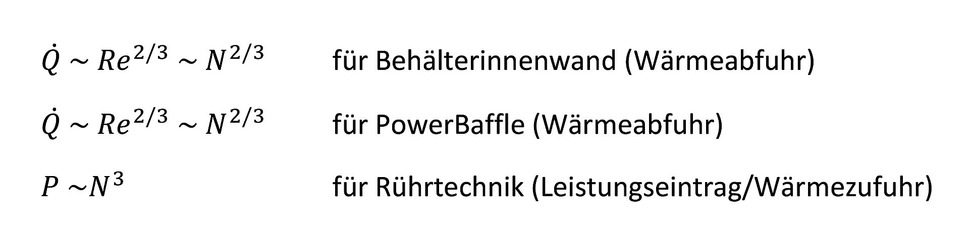 Es ist anzumerken, dass die „optimierte Rührerdrehzahl“ lediglich ein Optimum aus wärmetechnischer Sicht widerspiegelt! Weitere prozessspezifische Aspekte, wie der notwendige Leistungseintrag, die Strömungsverhältnisse bzw. Umwälzleistung, die Betriebskosten oder die kritische Drehzahl (1. Eigenfrequenz des Rührsystems) zur Vermeidung von Schwingungen, sind zu beachten und haben meist Vorrang.