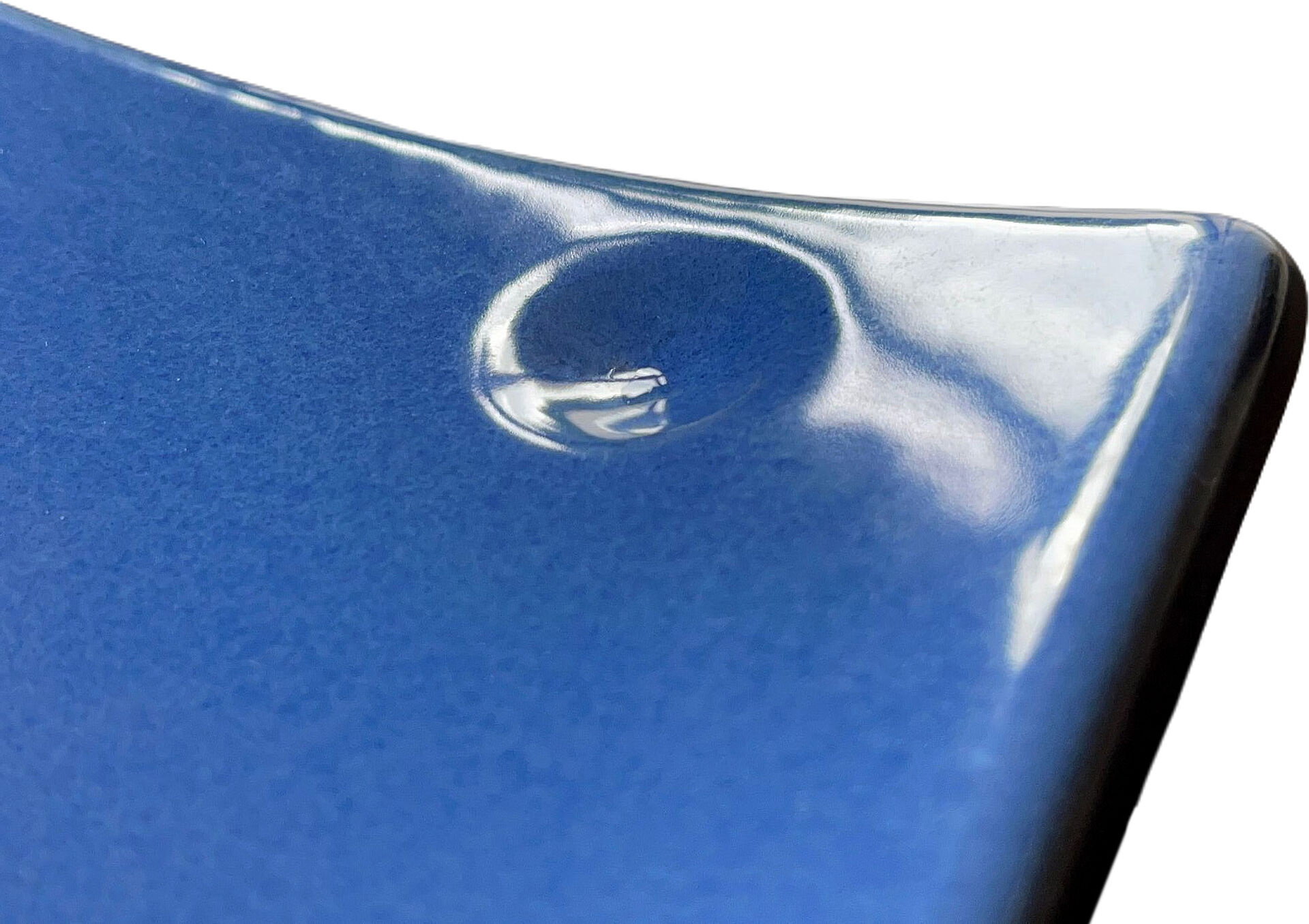 Beispiel für einen Referenzdreipunkt auf einer mit elektrisch ableitfähigem Email (Condusist) emaillierten Oberfläche. Die emaillierten Vertiefungen sind mit bloßem Auge gut zu erkennen und auch auf einer großen Fläche schnell visuell und auch haptisch wiederauffindbar.